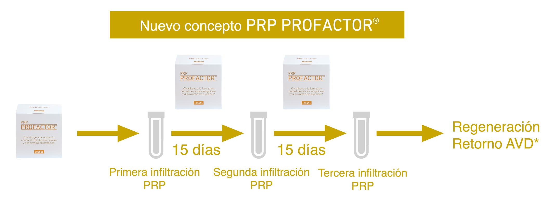 Por lo que, PRP PROFACTOR® se administra 15 días previos a cada una de las inyecciones, contemplando la vida media de las plaquetas (7-10 días) y el factor tiempo para poder influir en su composición.