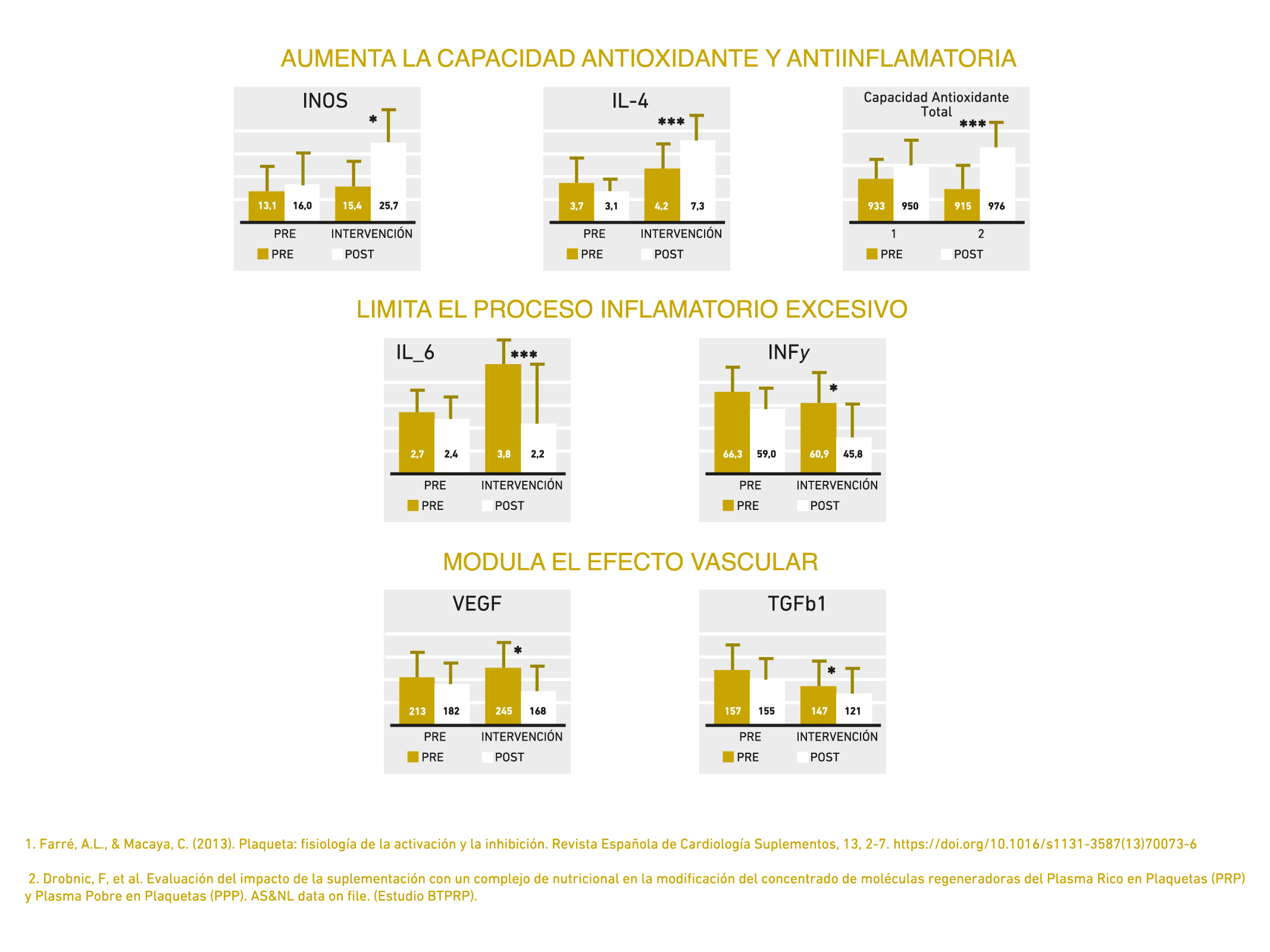 PRP PROFACTOR® junto a una terapia biológica basada en PRPs, se maximizan los resultados de la terapia biológica. Los resultados obtenidos en nuestro ensayo clínico revelan una disminución significativa de la capacidad proinflamatoria y angiogénica del PRP y un aumento de su capacidad antioxidante.